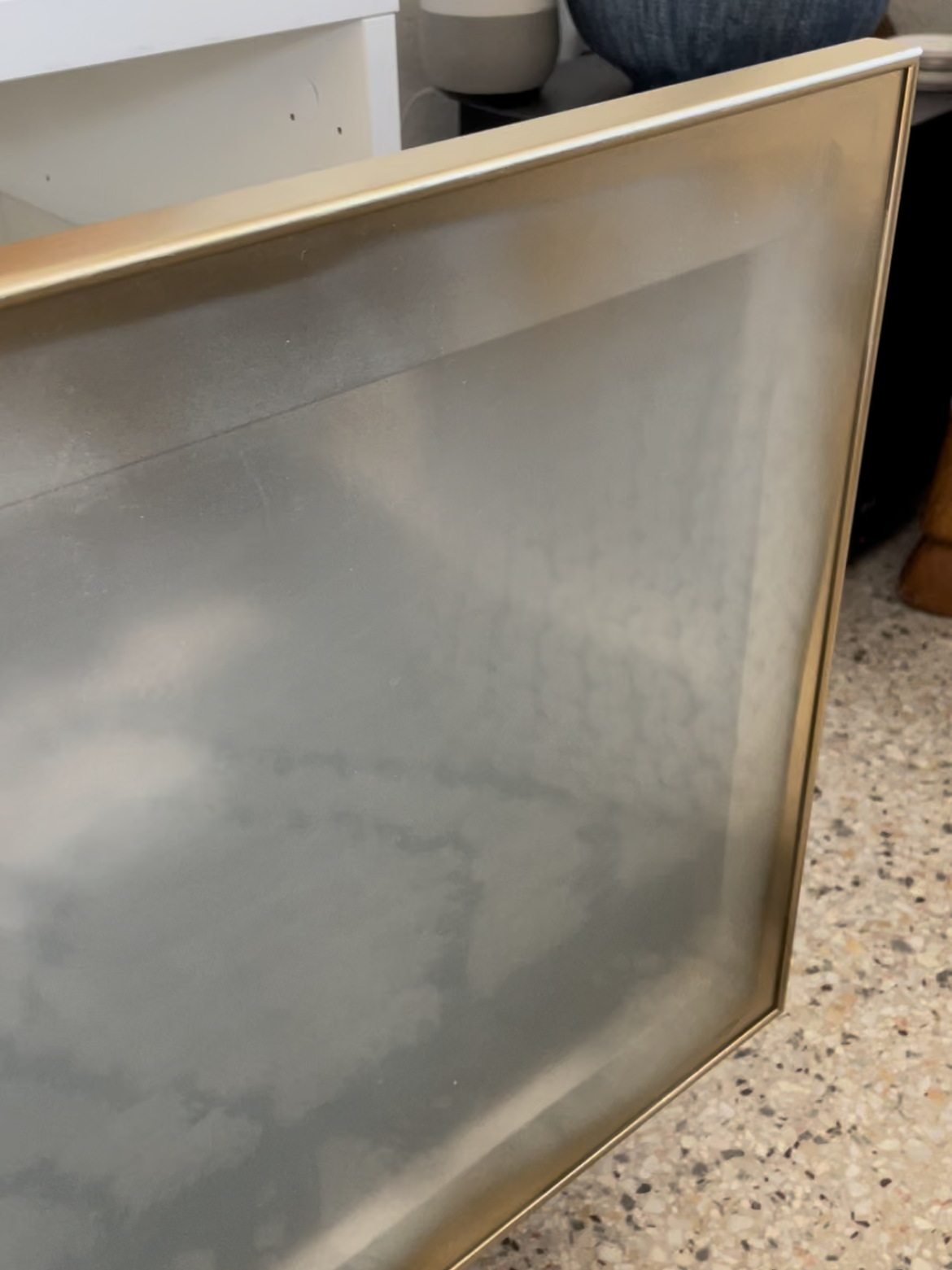 I spray painted the silver trim on the tv stand gold and also the finger pull handles so they match. (I’m a pretty messy painter, but figured it would be covered by pole wrap any way!)