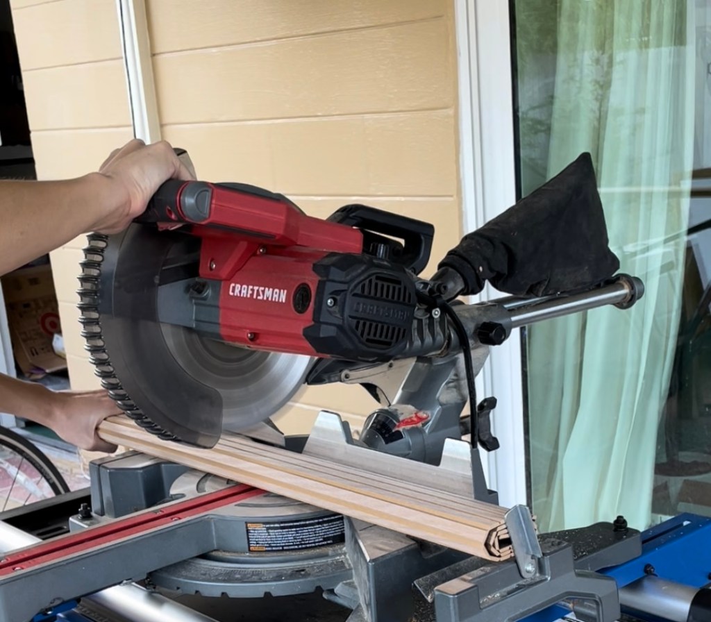 - Measure the amount of pole wrap you need. The drawers are about 48″ long each, and with the pole wrap being 16″, I needed about 2.5 pieces for each drawer.