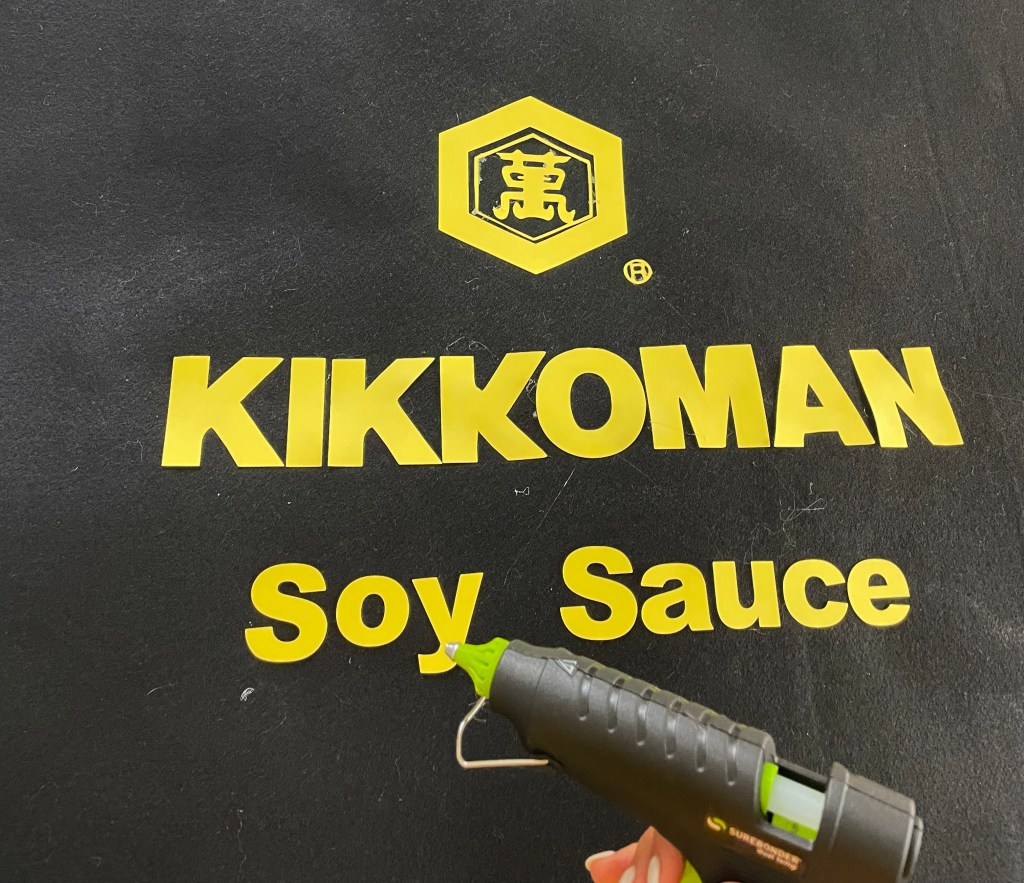 - Line up your letters on your felt, when happy with that, hot glue it on!