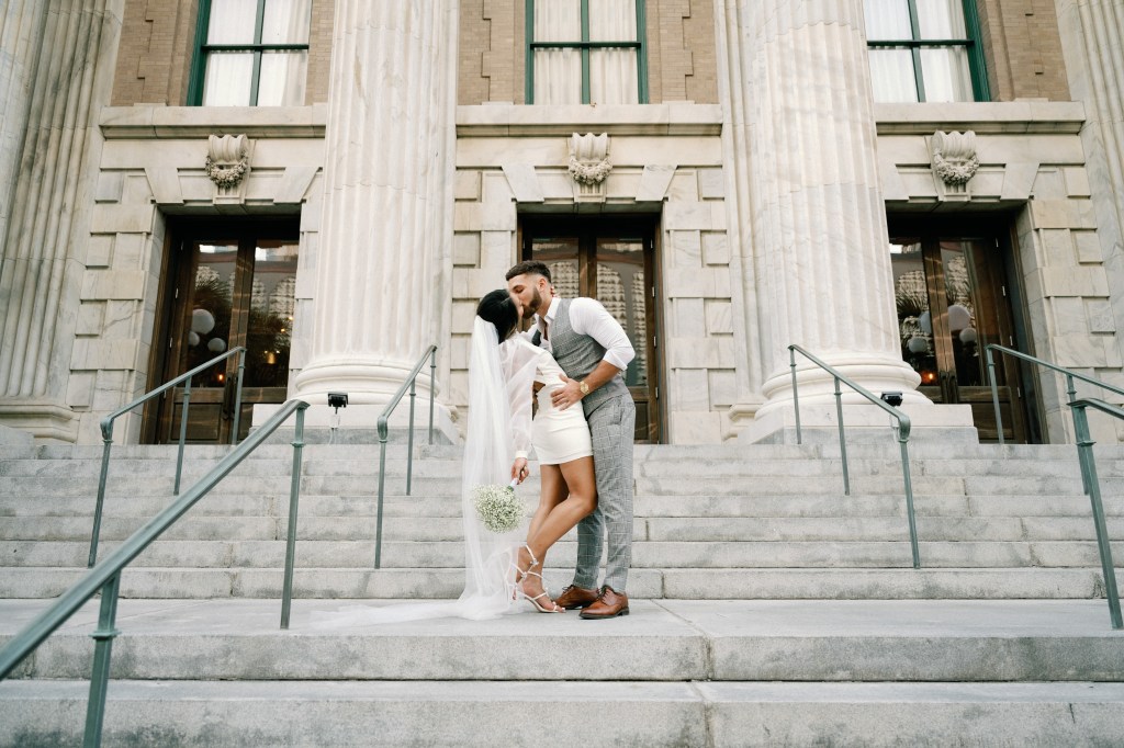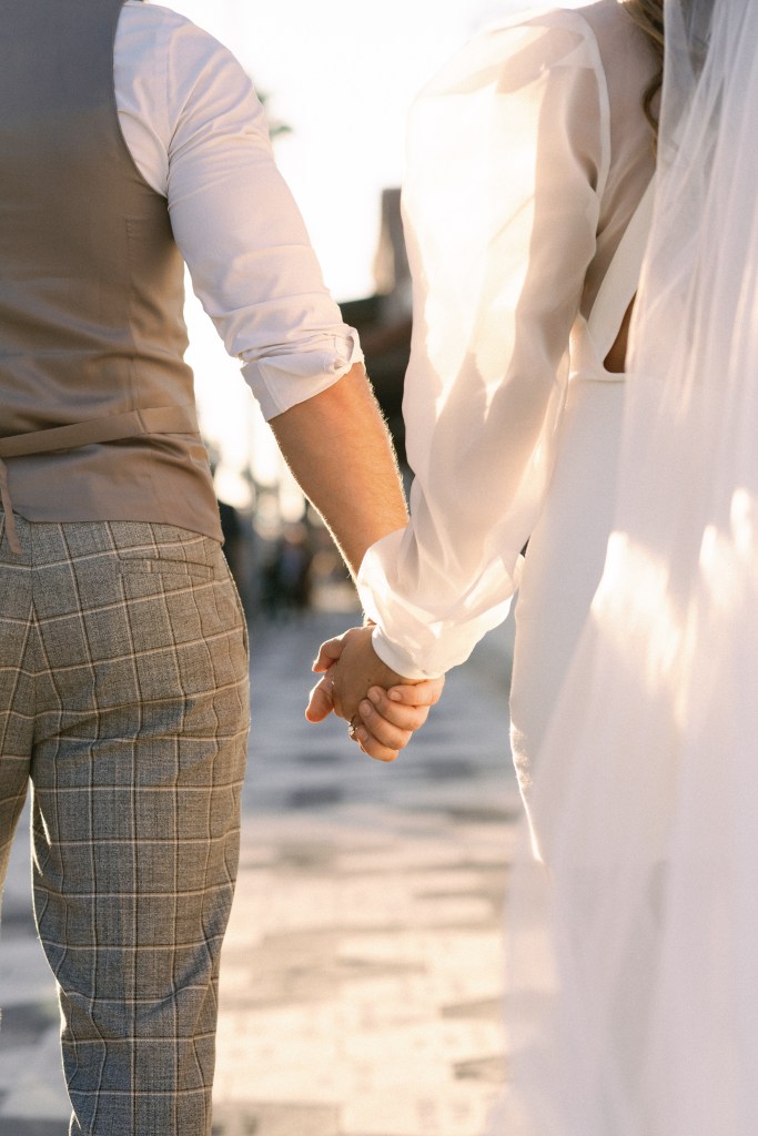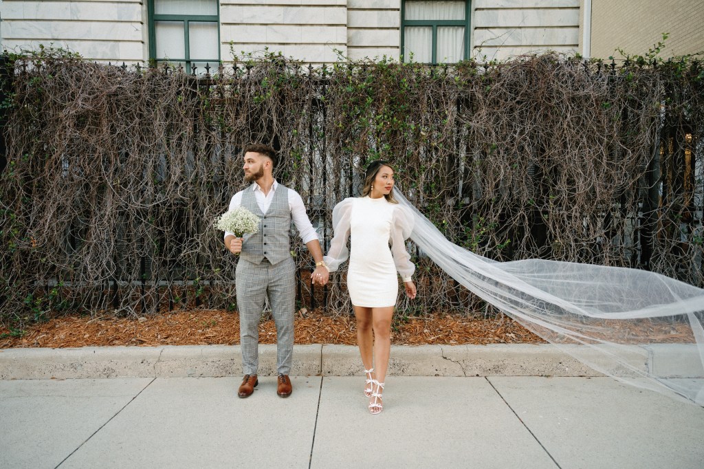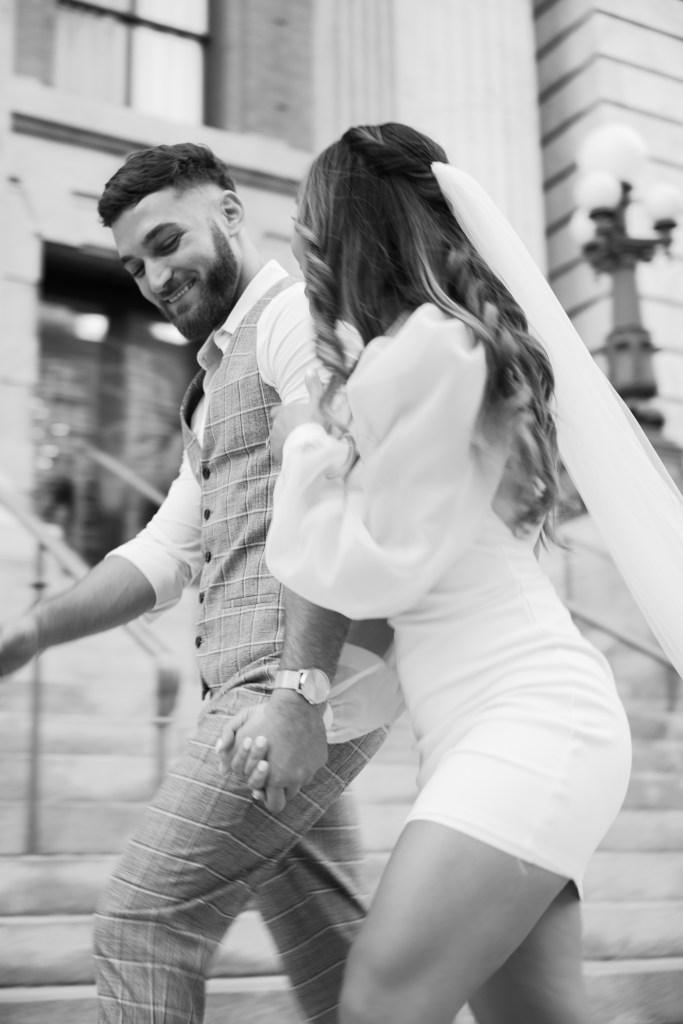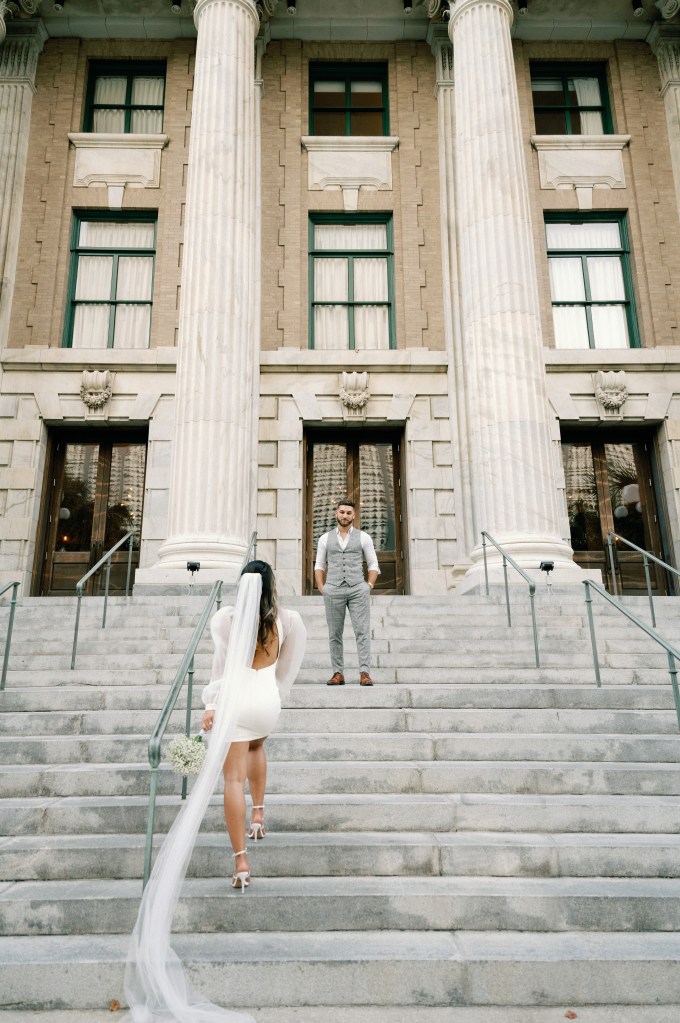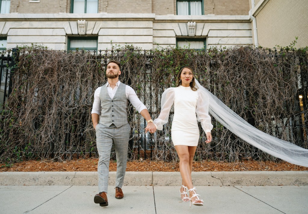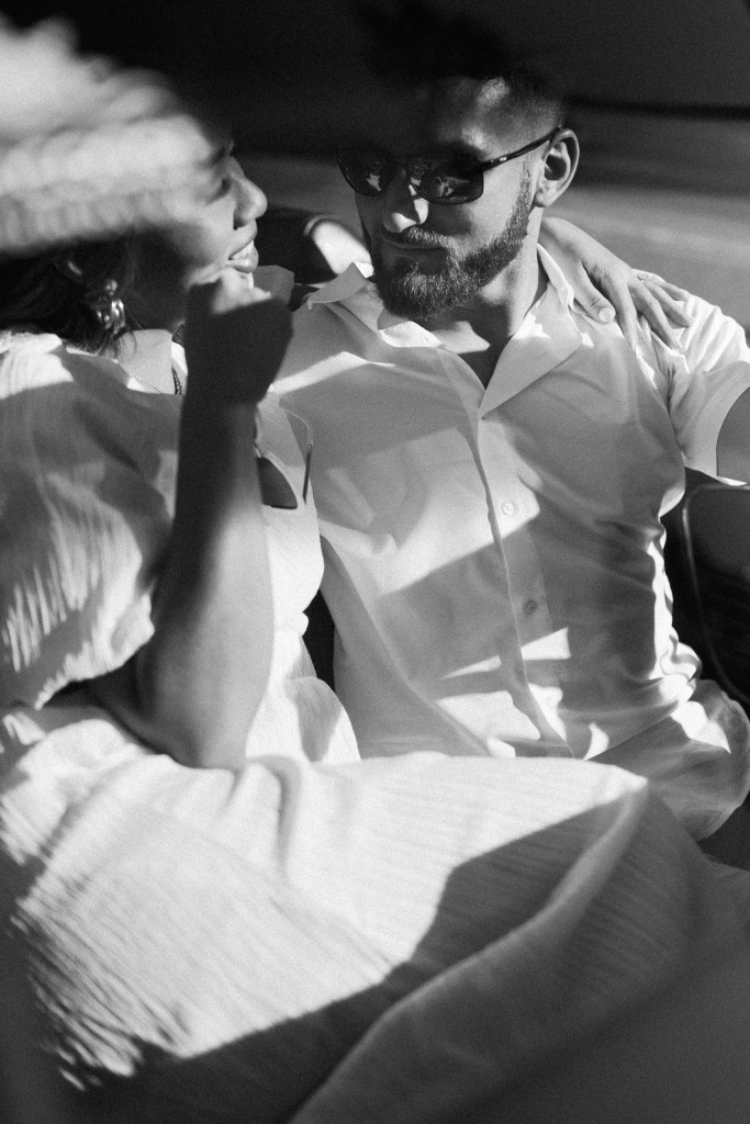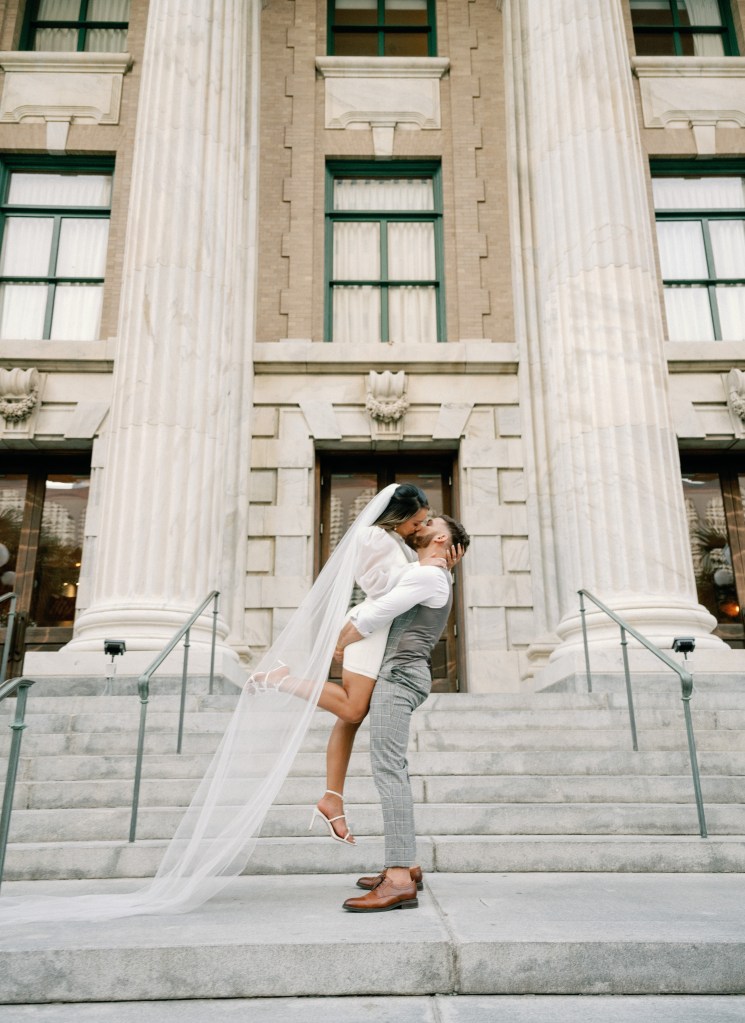 We were going for a retro, old Florida style engagement shoot that looked like we were eloping. I’m talking full paparazzi vibes like we were leaving all of our problems behind, Bonnie and Clyde, and running off together into the sunset. Our photographer, Dewitt for Love Photography, understood the assignment. The first location is giving California or Havana vibes in Ybor, and the second in downtown Tampa looks like NYC. I love that we were able to get our photos to look like they were taken in such different places, but still be right here in Tampa.